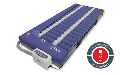 A high specification foam mattress, offering a reactive pressure relief support surface for patients at an elevated risk of pressure ulceration. It is also effective for managing patients with Category 1 and 2 pressure ulcers. The unique OSKA heel Offloader feature also supports the management of patients with any category of heel pressure ulcer.